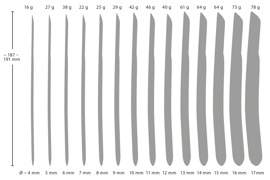 Gesamtlänge 18,7 cm-19,1 cm, Einführlänge 13,4 cm-13,7 cm.
