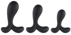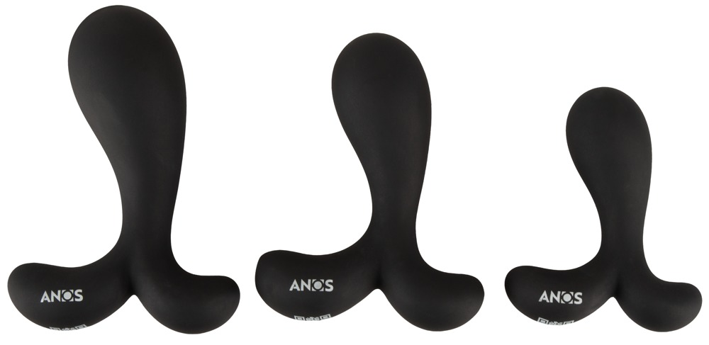 Butt Plug Training Set With Slightly Curved Tips von ANOS mit 3 Silikon-Analplugs in verschiedenen Grössen und Gewichten. Perfekt für rektale Stimulation und Dehntraining. Jeder glatte Plug mit leicht gebogener, ausgeformter Spitze, um insbesondere die Prostata (P-Punkt) gezielt zu stimulieren. Der 2-armige Stopper sorgt dabei für analsicheren Sitz und Spass sowie bequemes Herausziehen. Alle 3 Analplugs sind aus seidig-softem Silikon gefertigt und in der Verjüngung flexibel. Für leichtes Einführen, optimale Anpassung und höchsten Komfort beim Anal-Training!