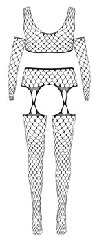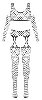 3-teiliges schwarzes Dessous-Set von Fantasy by Cottelli mit kurzem Top, Straps-Strumpfhose und einem Paar Armstulpen. Alles aus grossmaschigem Netz – nahtlos gefertigt, hochelastisch und weich anschmiegsam für besten Tragekomfort. Straps-Strumpfhose im Schritt offen und luftig, Zehenpartie verstärkt.