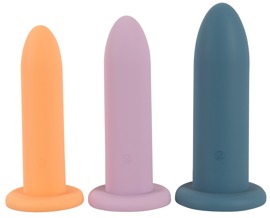 Training Set Three in a Row von You2Toys mit 3 massiven Silikon-Dildos in verschiedenen Pastellfarben, Grössen und Gewichten. Die Dildos sind angenehm fest und gleichzeitig flexibel, wodurch sie vielseitig einsetzbar sind – allein oder zu zweit. Mit ihren grosszügigen Massen ist das Dildo-Trio insbesondere für erfahrene Anwender:innen optimal, die bereits mit grösseren Durchmessern vertraut sind und gezielt weiter dehnen möchten – vaginal oder anal. Das Set bietet fortgeschrittenen Nutzer:innen mehr Abwechslung und Herausforderung beim Lust- oder Trainingserlebnis.