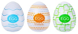 3 kompakte Einmal-Masturbatoren (Eggs) im Standard Set 1 von Tenga mit verschiedenen innovativen Reizstrukturen im Inneren: Wavy, Starry und Cubic. Die supersoften Masturbator-Sleeves sind jeweils in einer frechen Ei-Schale verpackt. Inklusive ist jeweils ein Gleitgel, sodass die Sleeve direkt eingesetzt werden kann – perfekt für unterwegs! Beim Handjob dehnt sich die elastische Sleeve aus und passt sich so jeder Penisgrösse an. Die Sleeve kann auch umgestülpt über die Finger gezogen werden, um die Vulva zu stimulieren.