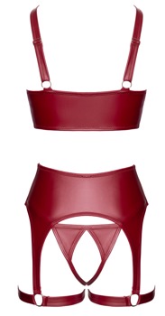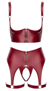 Aufregendes Ouvert-Set von Cottelli LINGERIE mit busenfreier Hebe, schrittoffenem String und Strapsgürtel mit Schenkelriemen. Edler bordeauxroter Mattlook verführerisch in Szene gesetzt mit goldfarbenen Ringen und Zips. Rundum weich und elastisch für hohen Tragekomfort. Sowohl Hebe als auch Strapsgürtel haben vorne einen durchgehenden dekorativen Reissverschluss. Die länger geschnittene Hebe bringt mit ihren leicht gefütterten Bügel-Cups den Busen in Hochform. Die Träger sind passend verstellbar. Der Strapsgürtel verführt mit fest angebrachten Schenkelriemen, die ebenfalls passend verstellbar sind. Der String ist im Schritt komplett offen.