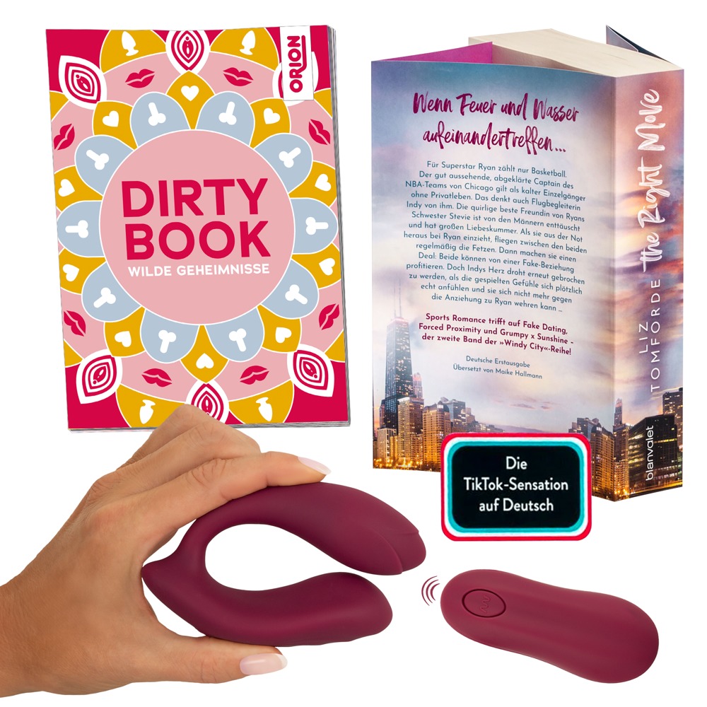 Mit dem Roman The Right Move wird’s romantisch und knisternd – denn wenn Indy und Ryan aufeinandertreffen, fliegen die Funken. Und wer sagt, dass Lesen immer brav sein muss? Der Panty-Vibrator von Rosenrot sorgt schon während der heissesten Kapitel für ganz eigene Schwingungen – ganz diskret und per Fernbedienung steuerbar, egal ob auf dem Sofa oder im Bett. Für noch mehr Spass gibt’s das Dirty-Book: Hier werden vertrauliche Infos und heimliche Wünsche geteilt und freche Mandalas ausgemalt. Heisse Romanze, sündige Vibes und bunte Geheimnisse – mehr Highlights passen kaum in einen Abend!