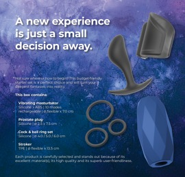 Das exklusive Men Love Toy Starter Set Masculine von Magic Shiver vereint 4 hochwertige Qualitäts-Toys für Männer in einem stilvollen Paket: Vibro-Masturbator, Analplug, Penisringe-Trio und Stroker-Masturbator. Dieses Set lädt dazu ein, neue Seiten der Lust zu erkunden und sowohl allein als auch zu zweit spannende Abwechslung zu erleben. Die benutzerfreundlichen Toys sind speziell für Neulinge konzipiert und bieten einen unkomplizierten und genussvollen Einstieg in die Welt der Intimspielzeuge. Die Details: