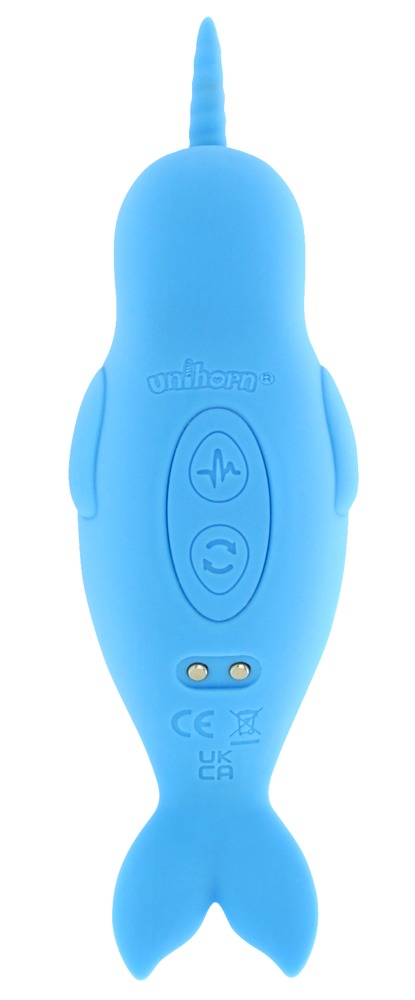 Niedlicher, beidseitig verwendbarer Klitoris-Vibrator Narwhal von Unihorn in Form eines kleinen Einhorns der Meere. Das weiche griffige Silikon-Toy überrascht gleich mit 2 Funktionen, um die Klitoris zu verwöhnen: Seine breite softe Schwanzflosse flattert aufgeregt und sein kleines Horn vibriert intensiv. So kann ganz nach Wunsch grossflächig oder punktuell stimuliert werden. Der leise Deluxe-Doppelmotor sorgt dabei für zuverlässige Power. Bequem per Knopfdruck sind jeweils 10 verschiedene Modi der Flatterbewegungen und der Vibrationen getrennt steuerbar. Ein magisches Toy für vielseitige Hotspot-Spiele – allein oder zu zweit, zuhause oder unterwegs!