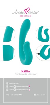 Der NAIRA Dual Heads Vibrator von beau cœur überzeugt mit seinem handlichen Design, frischer Farbgebung und spannenden Strukturen. Ausgestattet mit 2 leisen Power-Motoren (in jedem Kopf einer) verwöhnt der Doppelvibrator innen und aussen zugleich. Ob vaginal oder anal eingeführt, bietet er mit jeweils 10 Vibrationsmodi vielseitige Möglichkeiten für aufregenden Synchron-Spass. Die Modi lassen sich einfach per Knopfdruck getrennt steuern und individuell kombinieren, um ein ganz persönliches Verwöhnprogramm zu kreieren. Perfektes Doppel-Spiel für grenzenlose Lust!