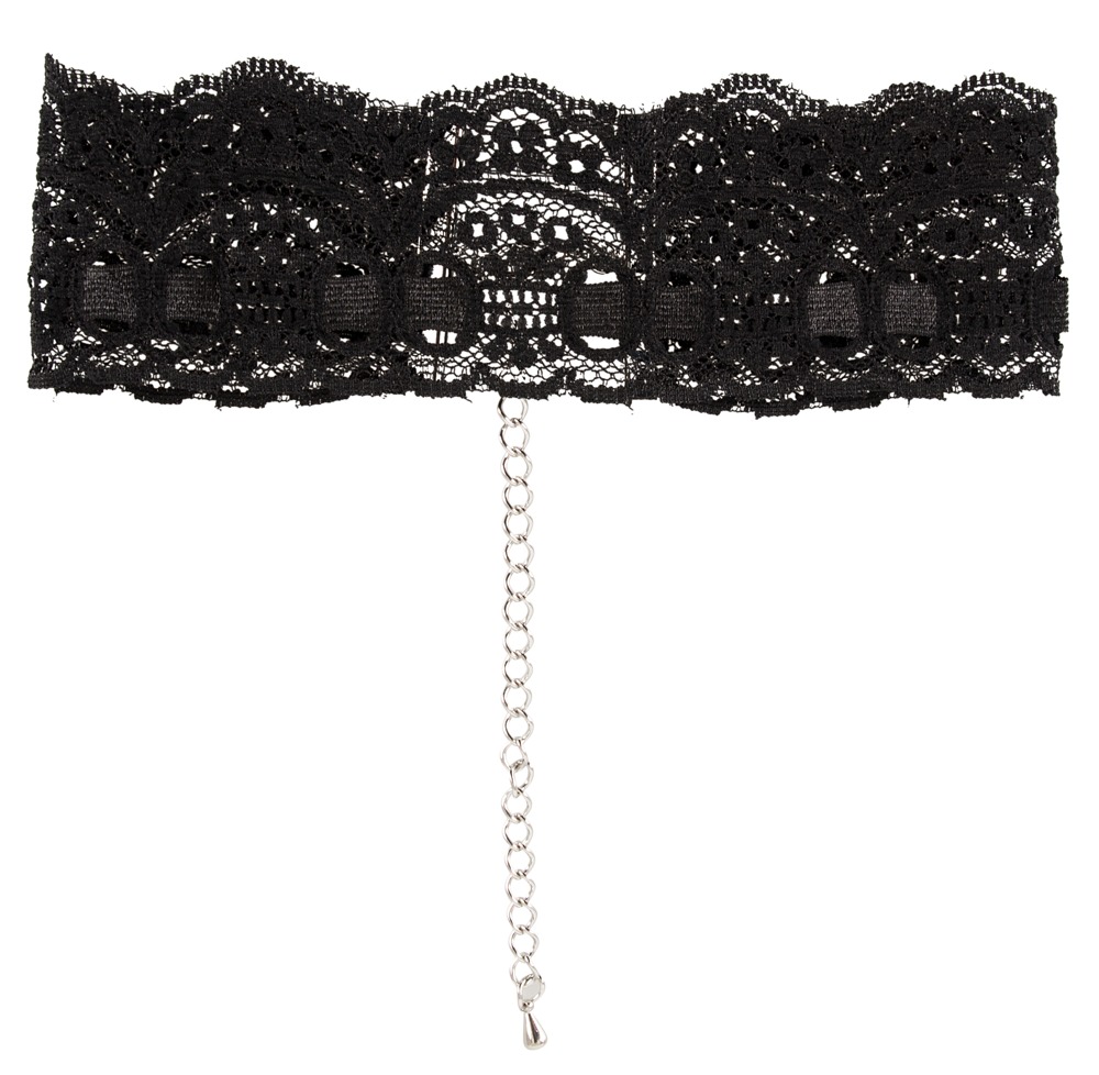 Schwarzes Spitzen-Halsband mit Ketten/Karabinerverschluss - mehrfach verstellbar.