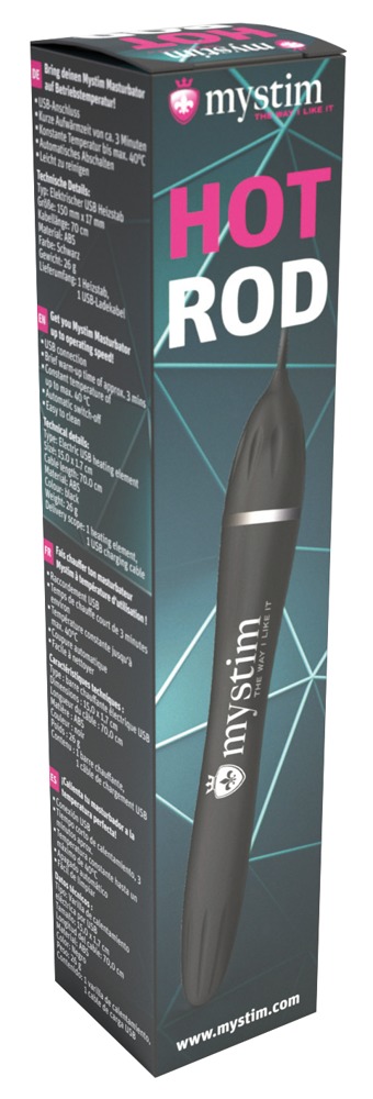 Heizstab, kompatibel mit Masturbatoren von der Marke Mystim, wie dem Opus Mica. Mit seiner kurzen Aufwärmzeit von 3 Minuten bringt er auch den kältesten Masturbator schnell auf eine angenehme Körpertemperatur. Der Hot Rod ist leicht zu reinigen und besitzt zudem eine automatische Abschaltung, die sich beim Erlangen der Maximaltemperatur von 45°C aktiviert, so, dass immer eine konstante Temperatur gehalten wird. Mit USB-Anschluss.