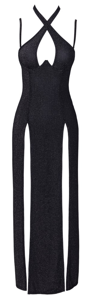 Elegantes langes Kleid von Cottelli PARTY in silber-schillerndem Schwarz. In enger taillierter Schnittführung mit eingearbeiteten Cup-Bügeln für ein schönes Dekolleté. Mit Neckholder (Hakenverschluss), der vorne auch über Kreuz getragen werden kann. Rücken- und schulterfrei – die zusätzlichen, passend verstellbaren Glanz-Träger sind abnehmbar. Der lange enge Rock ist vorne zweifach hoch geschlitzt für optimale Bewegungsfreiheit und viel Sex-Appeal. Das elastische Glitzermaterial schmiegt sich hautnah weich an für hohen Tragekomfort.