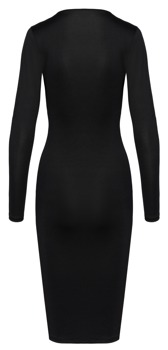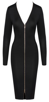 Schwarzes Langarm-Kleid von Cottelli PARTY in enger taillierter Schnittführung und Midi-Länge. Vorne mit goldfarbenem 2-Wege-Reissverschluss, der individuell von oben und unten geöffnet werden kann. Das feine Stretchmaterial schmiegt sich weich an und sorgt für besten Trage- und Bewegungskomfort.