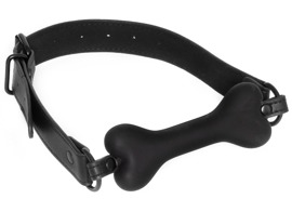 Hochwertiger schwarzer Knochen-Knebel/Bone Gag von Bad Kitty. Der ergonomische, bissfeste Knochen ist komplett aus softem Silikon gearbeitet für sicheren Sitz, besten Kau-Komfort und hygienische Reinigung. Mit dem Kopfriemen aus stilvollem weichem Lederimitat und dem verstellbaren Schnallenverschluss ist der Knebel schnell angelegt und jeder Kopfgrösse angepasst. Tierisch bequem beim verspielten Puppy- und Doggy-Play mit leisem Knurren und Biss!