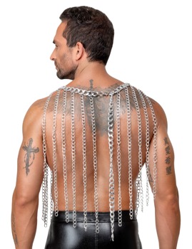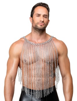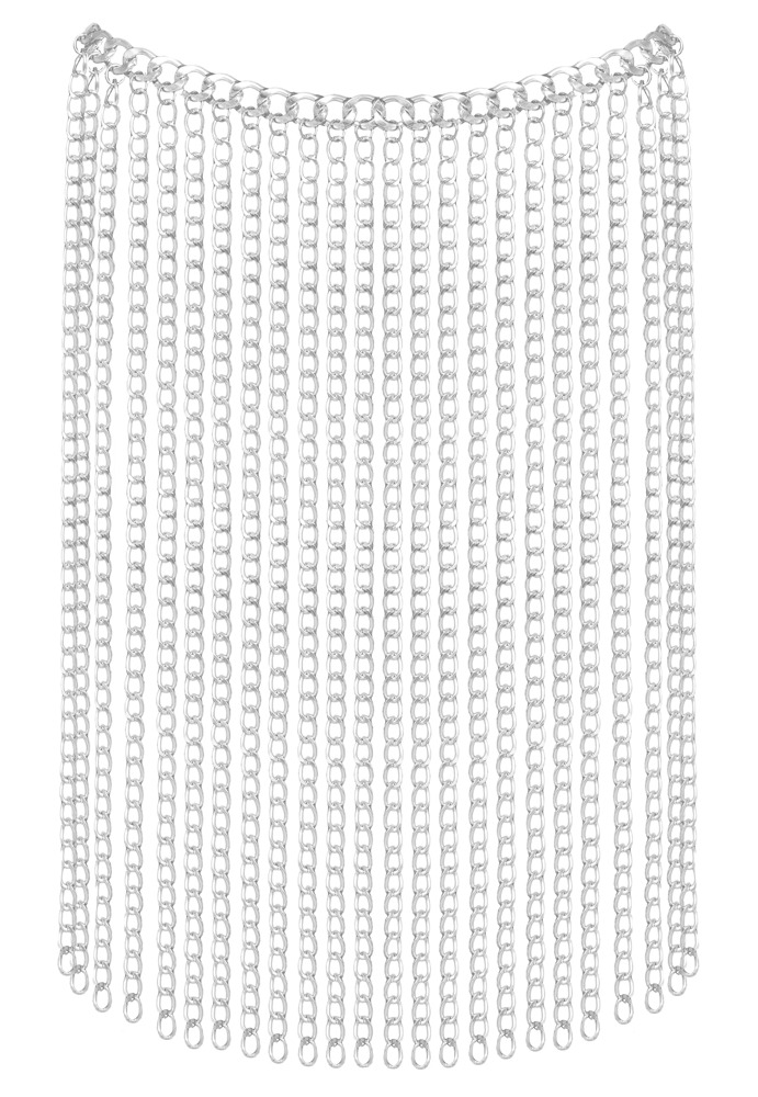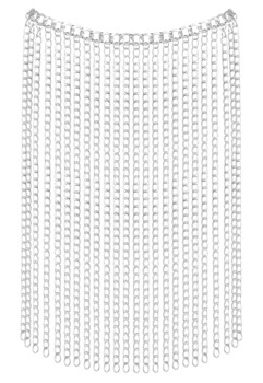 Silberfarbener Kettenkragen/-rock von Bad Kitty mit Kettenbesatz rundum. Unisex – mit Karabinerverschluss individuell verstell- und anpassbar. Somit als Kragen um den Hals oder als Rock bzw. Gürtel um die Lenden oder Hüfte tragbar. Ob solo für einen erotischen Auftritt oder mit enganliegenden Outfits stylisch kombiniert: Der markante Kettenschmuck ist stets ein Blickfang!