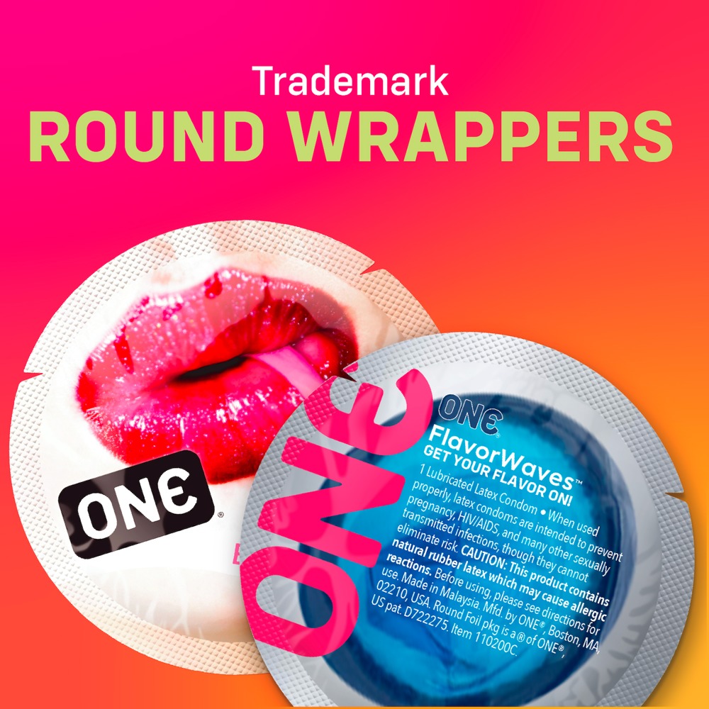 Transparente, aromatisierte Kondome Flavor Waves von ONE in 6 Geschmacksrichtungen für köstlichen Oralsex: Schokolade-Erdbeere, Island Punch, Fresh Mint, Bubblegum, Minz-Schokolade und Banana Split. Jede Geschmacksrichtung enthält keinen Zucker oder Süssstoff. So ist jedes Kondom auch für den Geschlechtsverkehr geeignet. Die konturierte Form mit Reservoir sorgt für komfortablen sicheren Sitz – das ultraweiche Sensatex- Naturkautschuklatex für ein natürliches Lustempfinden. Vegan und gentechnikfrei hergestellt. Mit Silikonöl befeuchtet.