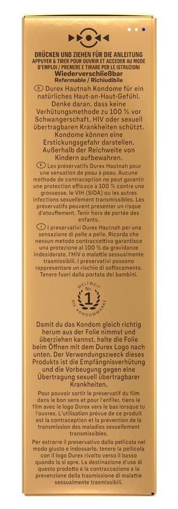 Transparente, ultra dünne Kondome Hautnah von Durex für maximale Empfindungen. Mit Silikongleitgel befeuchtet. Die innovative anatomische Easy-on-Form bietet im Vergleich zu herkömmlichen zylindrischen Kondomen an den richtigen Stellen etwas mehr Platz – für leichteres Anlegen und Abrollen sowie komfortablen Sitz und intensives Empfinden.