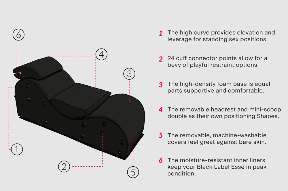 Liebesmöbel „Black Label Esse“ inklusive Handfesseln und Augenmaske Liberator