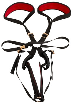 Die Body Swing von Bad Kitty präsentiert sich luxuriös und stilvoll mit schwarzen Gurten, roten Komfort-Polstern aus feinem Lederimitat und goldfarbenen Accessoires. Ein echtes Highlight für leidenschaftliche Sex-Akrobatik! Der schnell einsetzbare Tragegurt ermöglicht und erleichtert verschiedene Stellungen mit optimaler Unterstützung, sicherem Halt und Komfort – zuhause und unterwegs.