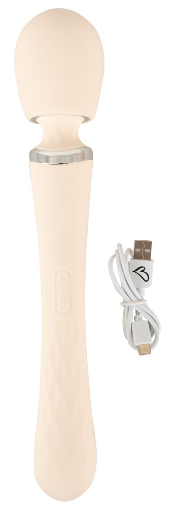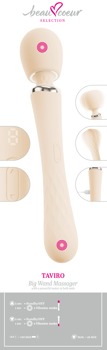 Beidseitig verwendbarer Big Wand Massager TAVIRO von beau cœur im ergonomischen Design für die äussere und innere Stimulierung. Sein vibrierender Massagekopf verwöhnt erogene Zonen am ganzen Körper. Sein langer Griff dient auch als Vibrator, der vaginal oder anal eingeführt werden kann. Schlank, elegant und zu allem bereit – allein oder zu zweit!
