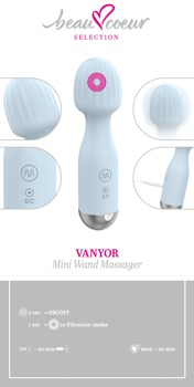 Handlicher VANYOR Mini Wand Massager von beau cœur in zarter Farbe – aber mit ordentlich Power! Aus seidig softem Silikon und mit sinnlichen Riffel-Strukturen am leicht beweglichen Massagekopf. Verwöhnt erogene Körperzonen und äussere Lustpunkte mit intensiven Vibrationen in 10 verschiedenen Modi. Für jede Lust und Laune ist der richtige Modus dabei – ganz bequem per Knopfdruck. Ein spiel- und anfängerfreudiges Toy für den Spass allein und zu zweit, zuhause und unterwegs.