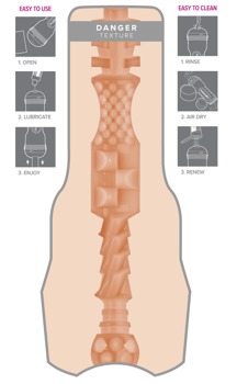 Masturbator mit Vagina-Öffnung im perlmuttfarbigen Gehäuse. Mit Orginalabdruck der Intimzone von Erotikstar Abella Danger. Im Inneren des Lustkanals sorgen unterschiedlich grosse Noppen, Lamellen und Rillenstrukturen für eine stimulationsintensive Oberfläche. Mit Abdeckkappe und Unterschrift des Stars neben den Schamlippen. Superskin-Textur.