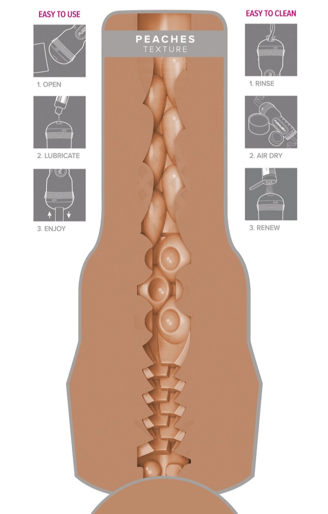 Griffiger Masturbator Autumn Falls Peaches von Fleshlight in diskreter Taschenlampen-Optik mit original abgeformter Anus-Öffnung von Erotikstar Autumn Falls. Und auch das sehr abwechslungsreich strukturierte Innenleben mit verschiedenen Durchmessern kommt dem engen Analkanal von Autumn ganz nah und sorgt für eine intensive, orgasmuswirksame Massage beim Handjob. Die Innensleeve aus hautähnlichem super softem Material ist neben der Öffnung mit einem Autogramm von Autumn versehen und lässt sich zur Reinigung leicht aus dem Masturbator entnehmen.