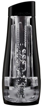 Transparenter Masturbator mit genoppt-gerilltem Lustkanal und enger Anusöffnung in schwarzer Dose. Gesamtlänge = Einführtiefe 20 cm. Enger Ø jeweils dehnbar. Material: TPE. Inklusive Gleitmittelprobe und Gebrauchsanweisung.