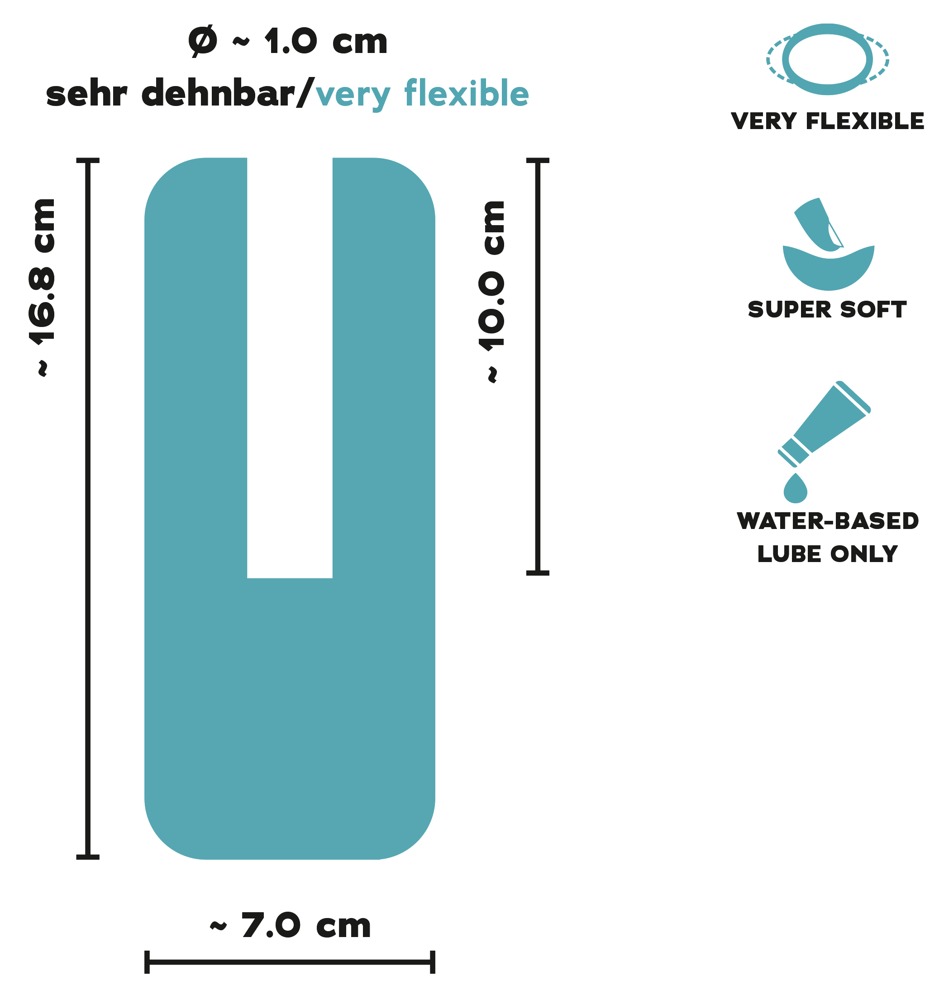 Gesamtlänge 16,8 cm, Einführtiefe 10 cm, Aussen-Ø 7 cm, Innen-Ø 1 cm (dehnbar).