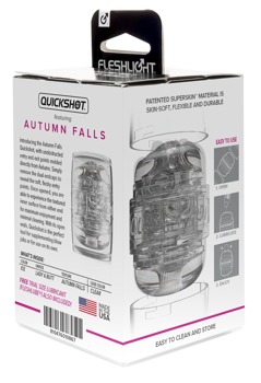 Kleiner handlicher Masturbator Quickshot Autumn Falls von Fleshlight in transparentem, griffigen Gehäuse mit Schutzkappen. Beidseitig für Handjob nutzbar: eine Seite in Vagina-Optik, eine Seite in Anus-Optik. Beide Öffnungen original abgeformt von Erotikstar Autumn Falls! Und auch der Lustkanal aus hautähnlichem Super Skin-Material kommt mit seinen unterschiedlich ausgeprägten Stimulationsstrukturen einem realistischen Erlebnis mit Autumn sehr nahe. Autumn Falls hat sogar mit ihrem Autogramm die Verpackung signiert!