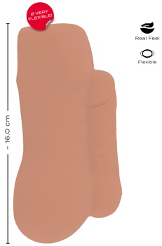 Der Masturbator RealMan von Realistixxx bietet mit seiner detailgetreuen Anus- und Penisoptik lustvolle Anal-Vergnügen mit Real-Feelings. Das weiche hautähnliche Material ist schön geschmeidig und nimmt die Körpertemperatur schnell an. Aufregende Strukturen im Inneren massieren den Penis beim Handjob intensiv. Der griffige Masturbator liegt dabei perfekt in der Hand und lässt sich für zupackende Feelings leicht zusammendrücken.