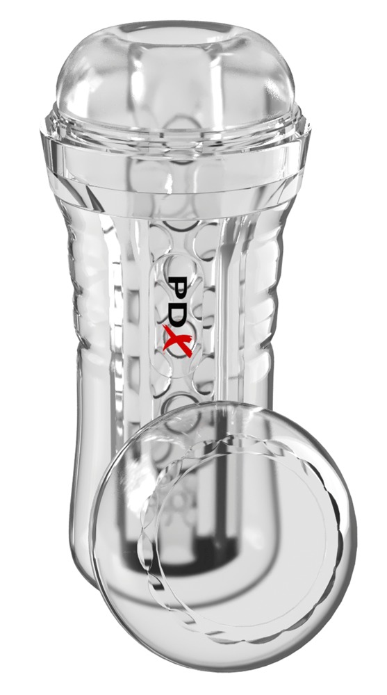 Transparenter Masturbator ViewTube Plus See-Thru EZ-Grip Stroker Clear von PDX Elite in griffigem Klarsicht-Gehäuse mit Schutzkappe. In der ultraweichen Sleeve wird der Penis von intensiven Strukturen rundherum massiert. Für rhythmische Handjobs, bei denen jede:r zuschauen kann! Für zusätzliche Sauggefühle wie beim besten Blowjob sorgt die Vakuumöffnung am Ende des Masturbators. Mit einem Finger wird einfach durch Öffnen und Verschliessen der Öffnung die Saugkraft variiert (Suction Control).