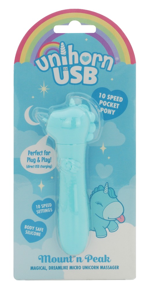 Charmanter Minivibrator USB Mount'n Peak von Unihorn im niedlichen Einhorn-Design. Mit extra kraftvoller Vibration, die bequem per Knopfdruck in 10 verschiedenen Modi steuerbar ist. Klein, griffig, handlich und mit supersofter Silikontextur ausgestattet für höchsten Verwöhn-Komfort. Immer dabei, schnell einsatzbereit und wiederaufladbar: Unter dem Köpfchen steckt direkt der USB-Stecker! Ein magisches Toy für vielseitige Hotspot-Spiele – allein, zu zweit, zuhause, unterwegs und jederzeit.