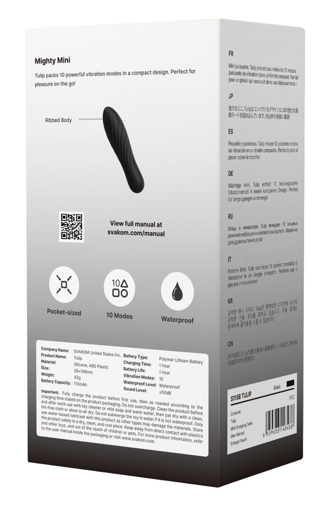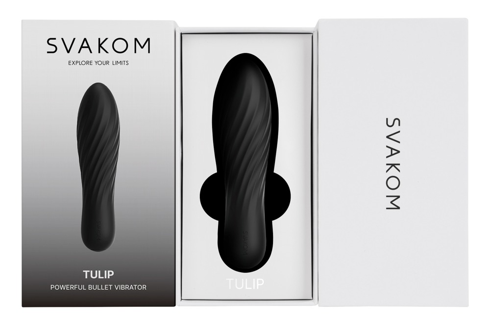 Powerful Bullet Vibrator Tulip von SVAKOM im kurvigen Rillendesign. Klein, kompakt, kraftvoll und ultrasoft schmiegt sich der Silikonvibrator perfekt in die Hand – und passt in jede Tasche! Das stimulationsintensive, anfängerfreundliche Leichtgewicht (42 g) lässt sich in jedes Solo- und Liebesspiel aufregend mit einbeziehen.