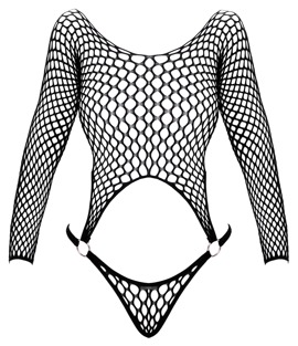 Schwarzer Netzbody von Fantasy by Cottelli mit modisch grossen Maschen. In raffinierter Zweiteiler-Optik, wobei vorne Langarm-Top und Riostring mit 2 dekorativen, silberfarbenen Ringen fest verbunden sind. Hohe Beinausschnitte setzen Po und Beine perfekt in Szene. Rundum hochelastisch und weich anschmiegsam für besten Tragekomfort.