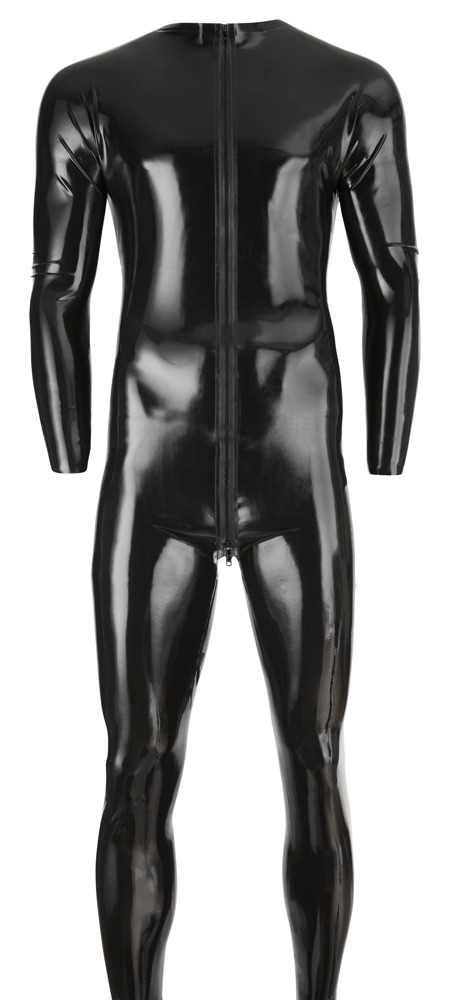 Hautenger Overall mit Fuss und 3-Wege-Zip bis über den Po. Ein absolutes Glanzstück für jeden Fetisch-Kleiderschrank.