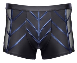 Betonende Pants von NEK im coolen schwarzen Mattlook. Vorne und seitlich mit aufgesetzten, rasanten Streifen im blauen Metallic-Mattlook. Jeweils seitlich zusätzlich ein schwarz-transparenter Netz-Einsatz. Mit bezogenem Bundgummi sowie rundum weich und elastisch für besten Tragekomfort.