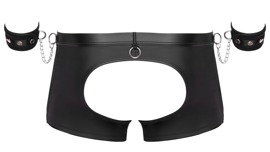 Schwarze Pants von Svenjoyment Bondage inklusive Soft-Handfesseln. Aufregend po-freie Pants im coolen Material-Mix aus Netz und Mattlook mit silberfarbenen Metalldetails. Weich und elastisch für besten Tragekomfort. Mit Reissverschluss im Beutel. Am bezogenen Bund und jeweils seitlich Fesselringe, in die die beiliegenden Handfesseln mit ihren Karabinerketten schnell eingehakt sind. Die soften Mattlook-Manschetten sind mit Klettverschlüssen schnell angelegt und angepasst.