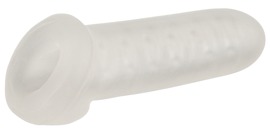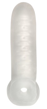 Die geschlossene Thickening Sleeve with Ball Ring Size L von REBEL vergrössert den Penis schnell und einfach für ausfüllende Lustmomente. Die elastische Transparent-Penishülle wird einfach über das Glied gestreift. Schon ist der Penis rundum 1,4 cm dicker und länger! Die inneren Rillen sorgen dabei für stimulierende Reibung und rutschfesten Sitz. Der dehnbare Hodenring bietet aufregenden Zug und sichert den festen Halt der Hülle. Auch beim wildesten Liebesspiel!