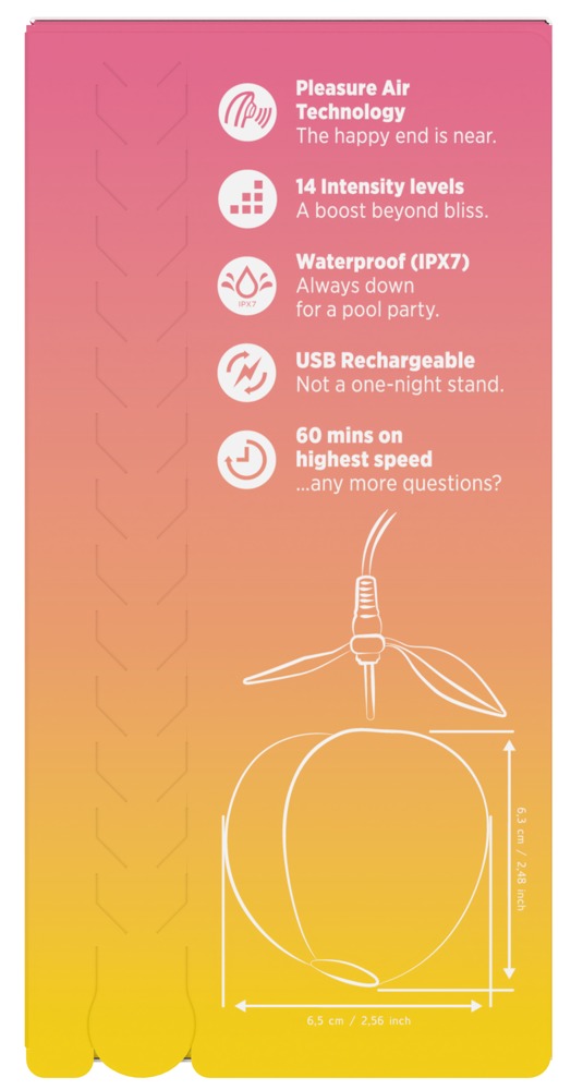 Aus seidig weichem Silikon gefertigt, schmeichelt der Peach-Pulsator nicht nur der Klitoris, sondern auch allen anderen äusseren Lustpunkten. Handlich und einfach zu bedienen, lässt er sich in jedes Solo & Paarspiel spielerisch miteinbeziehen – zuhause und unterwegs.