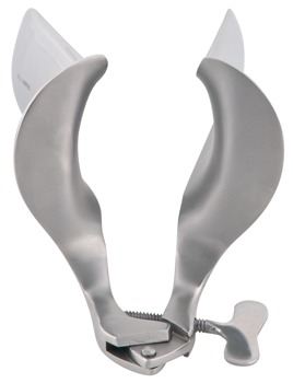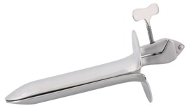 Das solide stabile Spekulum von fetish collection aus rostfreiem Edelstahl (aussen poliert und innen mattiert) wird durch eine seitliche Stellschraube geöffnet und gespreizt.