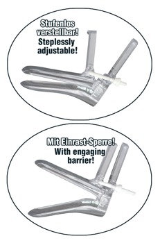 Das Vagina-Spekulum wird mit geschlossenem Schnabel (10 cm lang) eingeführt. Mit Hilfe des verstellbaren Schnabels mit Einrast-Sperre wird der Vaginaeingang sanft auseinandergedehnt (bis maximal 12 cm). Optimales Modell für den Einstieg. Nur für den einmaligen Gebrauch.