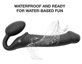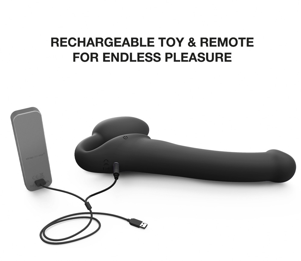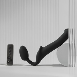 Der Vibrating Bendable Strap-On von Strap-on-me verwöhnt mit intensiven Vibrationen hoch 3 beim vielseitigen Solo oder beide beim heissen Rollenspiel, Pegging und Co. Gleich 3 starke, leise Motoren stecken im prallen Plug, im Kopf des markanten Schaftes und in der Mitte für eine kraftvolle Stimulation der Klitoris. Die Motoren lassen sich einzeln über die praktische Fernbedienung steuern; die Ein-Klick-Steuerung ermöglicht das Starten und Stoppen mit nur einem Tastendruck. 3 x 3 Vibrationsmodi in jeweils 3 Intensitäten bieten abwechslungsreichen Spass – auch in Bad und Dusche, da der Strap-on-Vibrator wasserdicht ist.