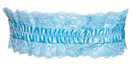 Hellblaues, 5,5 cm breites Strumpfband von Cottelli ACCESSOIRES aus weicher elastischer Spitze mit eingearbeitetem Stretchband für perfekten Halt. Mit Satinschleife verziert.
