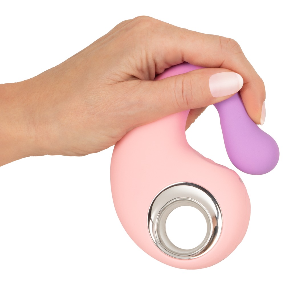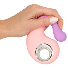 Gefertigt aus seidig-softem Silikon, lässt sich der Dualvibrator sanft einführen und flexibel bespielen. Er passt sich optimal den Körperkonturen und Bewegungen an. Der Schaft stimuliert mit seinem ausgeformten Vibro-Kopf intensiv vaginal und punktgenau die G-Zone. Der Klitoris-Pulsator verwöhnt den äusseren Hotspot mit pochend-pulsierender Zärtlichkeit. Dank seiner schmalen Form mit sicherem Griff ist der Vibrator auch für sinnliche anale Abenteuer geeignet. Doppelte Stimulation, doppelter Genuss, doppelter Komfort – für vielseitige Verwöhn-Momente allein und zu zweit!