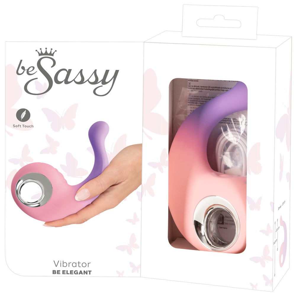 Stylischer Dualvibrator be Elegant von be Sassy für doppelte Lust: Kraftvolle Vibrationen stimulieren die Vagina, während gezielte Klopfimpulse die Klitoris verwöhnen. 2 leistungsstarke, leise Motoren liefern dabei zuverlässig Power und sind separat steuerbar. Sowohl die Vibrationen im ideal gebogenen Schaft als auch die Klitoris-Klopfimpulse bieten jeweils 10 verschiedene Modi für eine abwechslungsreiche, individuelle Stimulation – ganz bequem per Knopfdruck. Der praktische Ring-Griff macht die Bedienung besonders einfach.