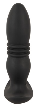 Vibro-Analplug RC Thrusting Massager von ANOS mit kräftiger Stossfunktion. Für tiefgehende Anal-Stimulationen mit einfühlsamer abgerundeter Spitze, die immer wieder zustossend die Prostata gezielt stimuliert. Die Vibrationen sind beim Tragen des Plugs auch am Perineum stark spürbar.