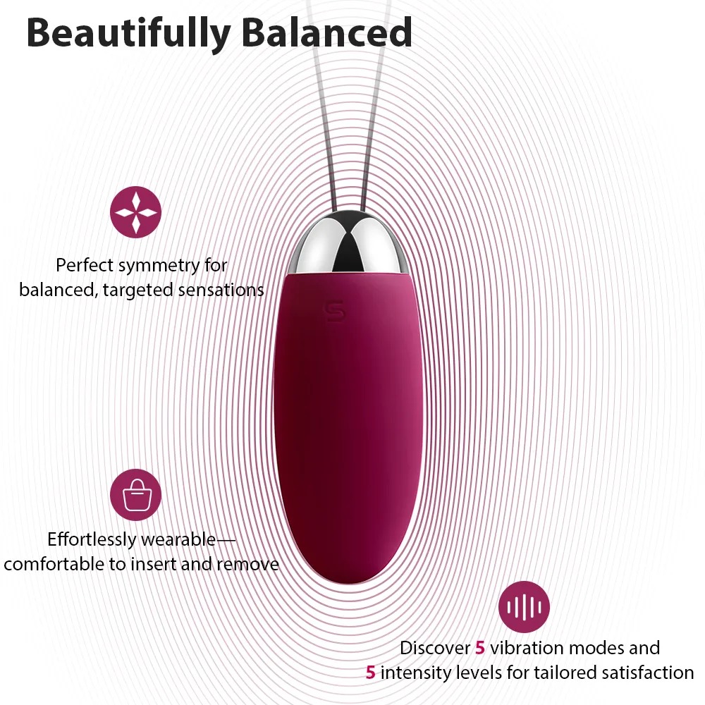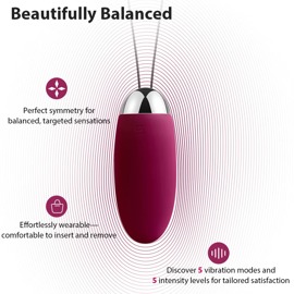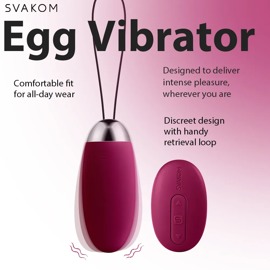 Wiederaufladbares, wasserdichtes Vibro-Ei mit seidiger Soft Touch Textur inklusive Rückholband. Mit 5 flüsterleisen Vibrationsmodi in jeweils 5 verschiedenen Intensitäten. Der zusätzliche SVAKOM Intelligent Mode ahmt die Vibrationsfrequenzen des Geschlechtsverkehrs bis zum Orgasmus nach. Steuerbar per Knopfdruck oder mit der beiliegenden Fernbedienung.
