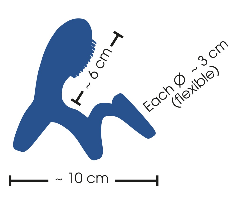 Gesamtlänge 10 cm, Ø 3 cm (dehnbar). Silikon mit PU-Beschichtung.