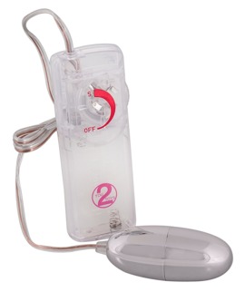 Silberfarbenes Vibroei. 6 cm lang, Ø 2,5 cm. Vibration mit transparentem, handlichem Bedienteil stufenlos regelbar. Material: ABS. (Batterien bitte extra bestellen: 2 x Mignon/AA)